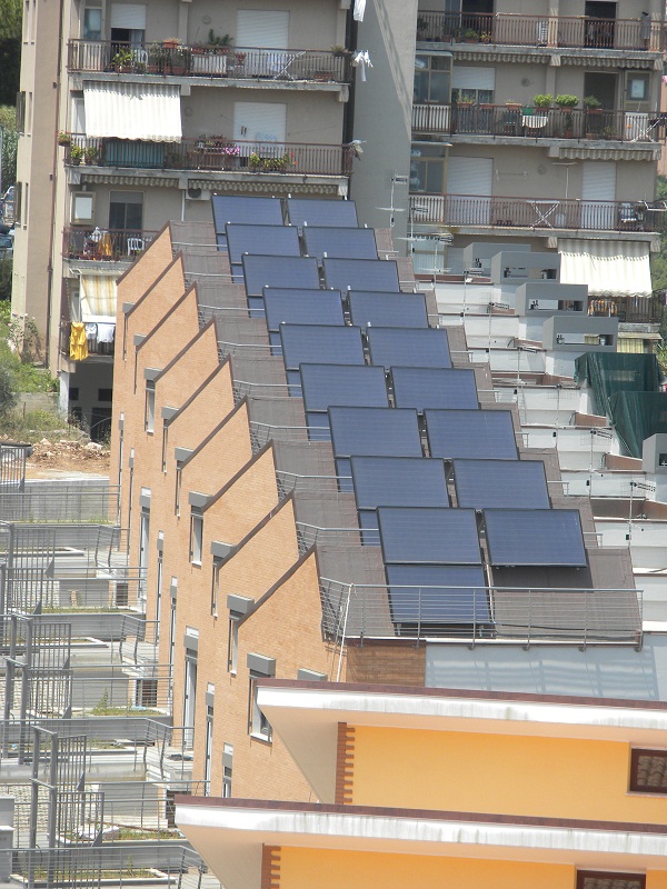 - Vista dall’alto copertura con sovrastanti pannelli solari a circolazione forzata